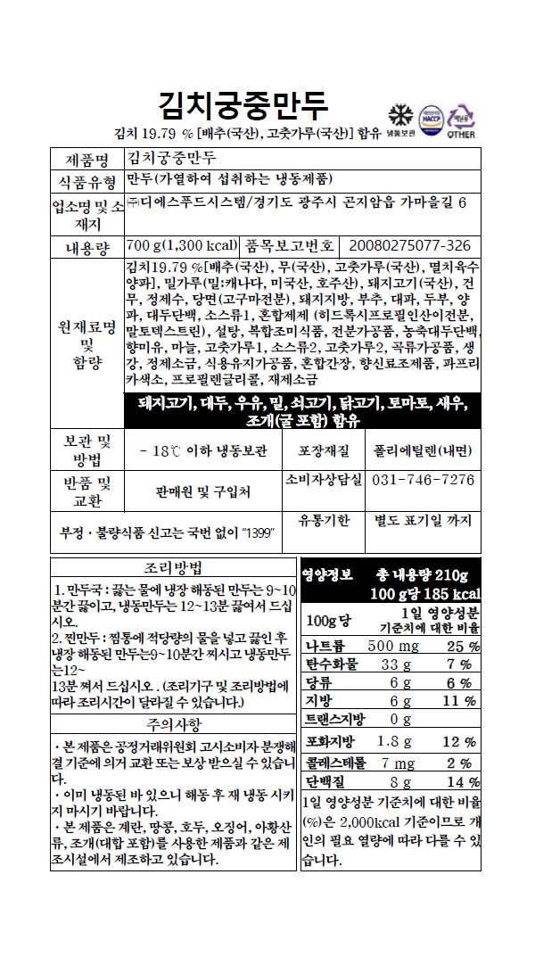 • 김치궁중만두(10알) (700g)