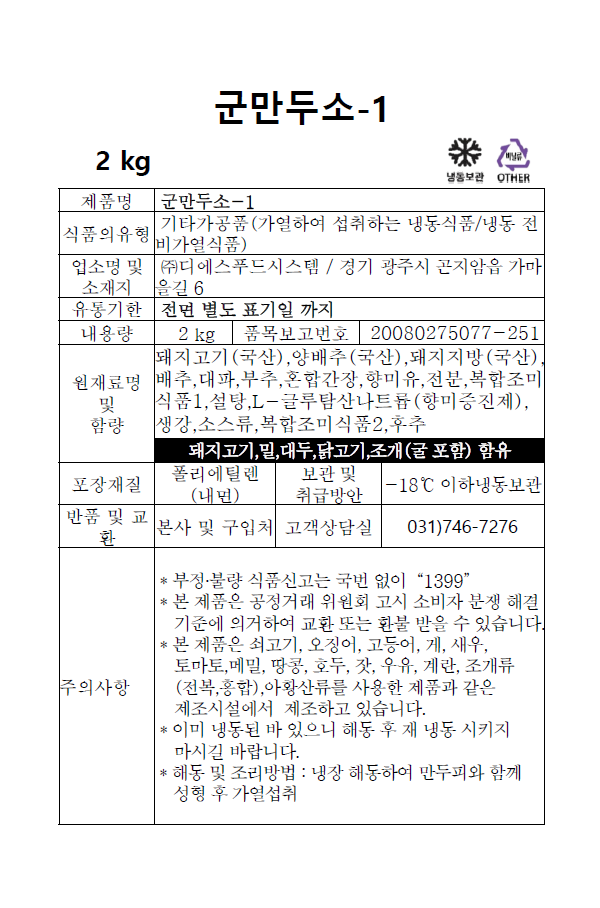 유전자재조합식품에 해당하는 경우의 표시 상품페이지 참고