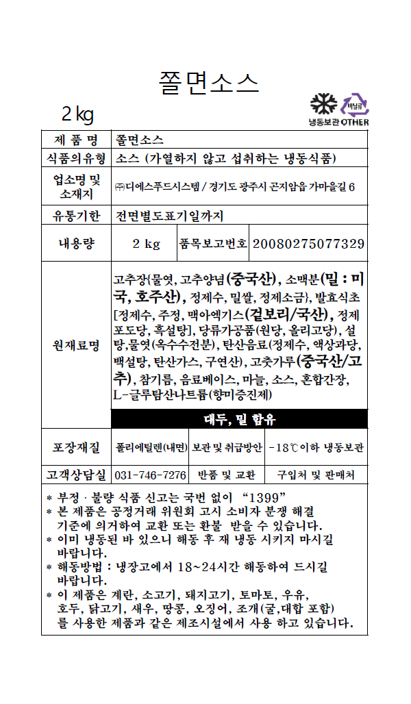 쫄면소스 (2kg)