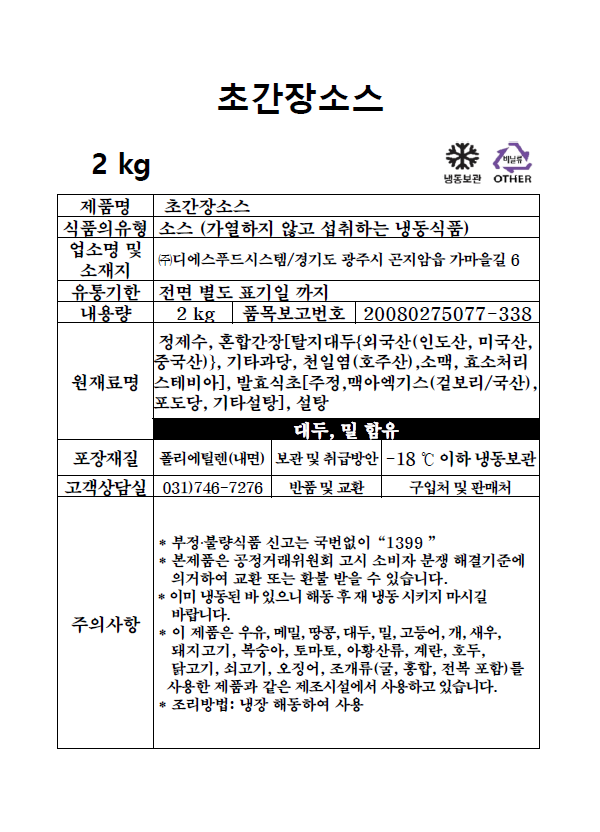 유전자재조합식품에 해당하는 경우의 표시 상품페이지 참고